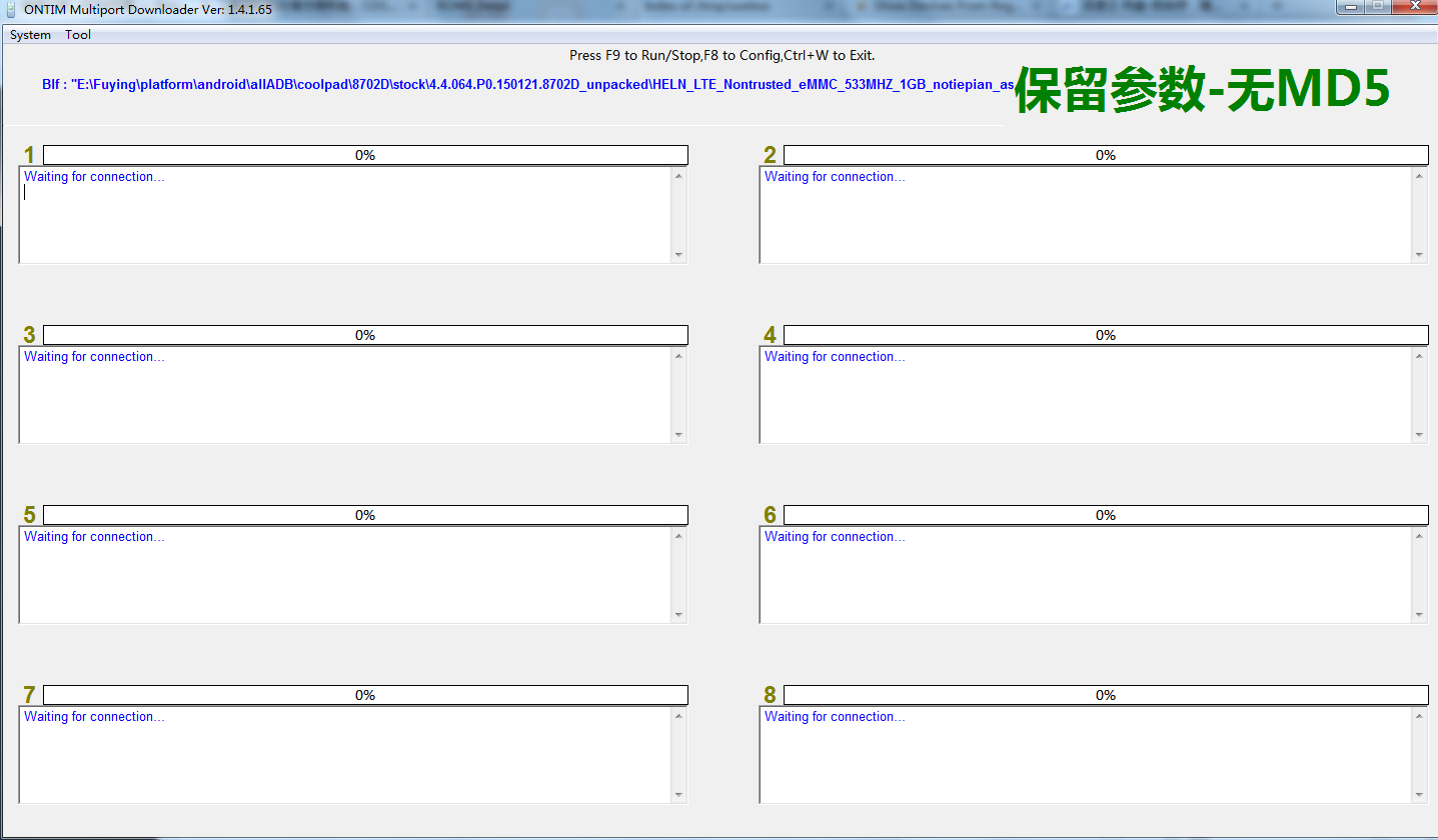 感谢评论中的@杨斌 朋友,他指出酷派8702D 使用swdownloader 刷机后,机子无法进入系统。ying 也已证实。小伙伴们可以使用"ONTIM Multiport Downloader" 来代替。 不喜欢折腾的可继续使用酷派提供的CDS,这段可无视了(点这里直达)。