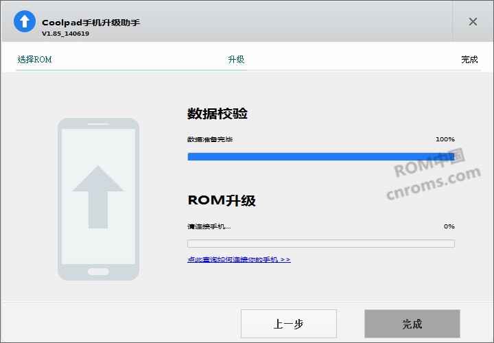 然后使用酷派CDA自助升级工具V1.85 继续升级就可以了,需要注意的是V1.85 版本的CDA 有可能会提示更新到V1.88,这时别更新就行!
