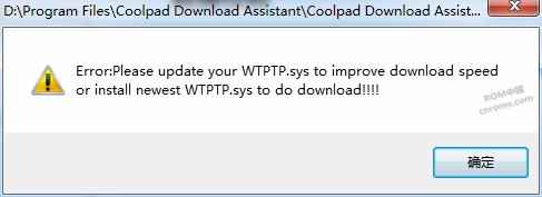 Frror:please update your WTPTP。sys to improve download speed or install newest WTPTP。sys to do download!!!!