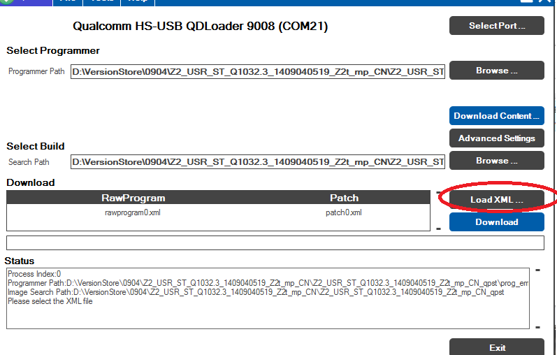 - 选择LoadXML,在弹出框中选择对应的rawprogram0.xml和patch.xml后如下图