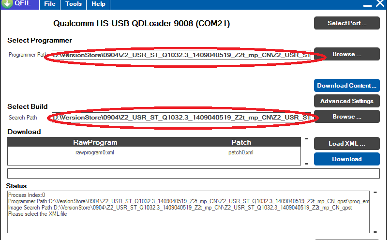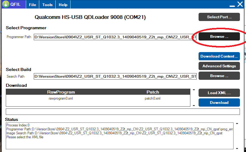 - 提到高通的 Qualcomm HS-USB QDLoader 9008,那就不能漏掉 QPST,新版本的QPST 提供了QFIL 程序来更新手机,所以红米Note移动4G双卡增强版的线刷方案又多了一个选择。