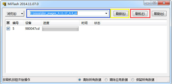 - 进入fastboot 的手机可以按官方教程直接使用小米提供的Miflash(附件)线刷。线刷需要的驱动程序通过安装Miflash 即可获得。 按 浏览 选择已解压的线刷包路径,点击 刷新 会显示目前已成功连接的设备,点击 刷机 将自动更新手机系统。 小米手机助手也是通过fastboot 模式刷机的。
